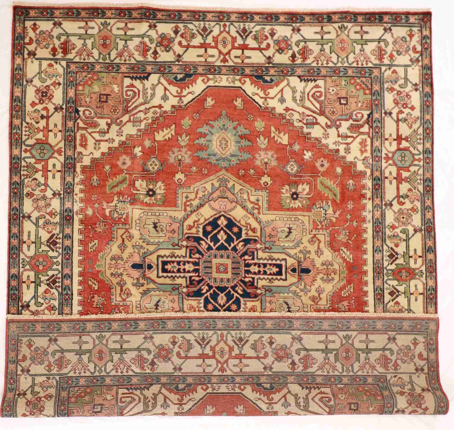 Handmade in Pak-Persia from a wool- blend - a Serapie design.